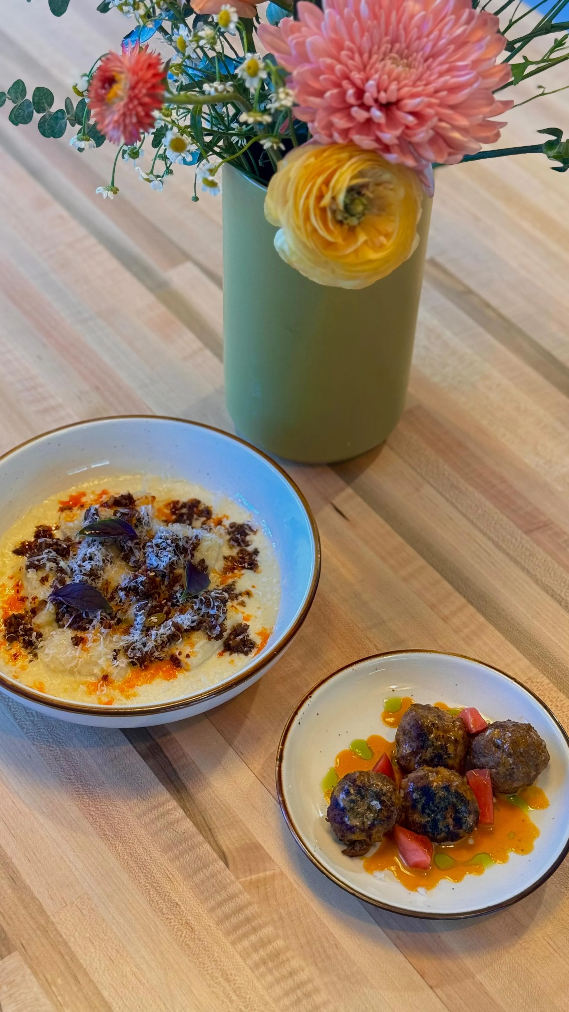 Enjoy the cozy atmosphere inside, or sit around the fire pit in the expansive outdoor dining area. Sunshine Wine is a wonderful neighborhood spot to enjoy a beverage with friends.
