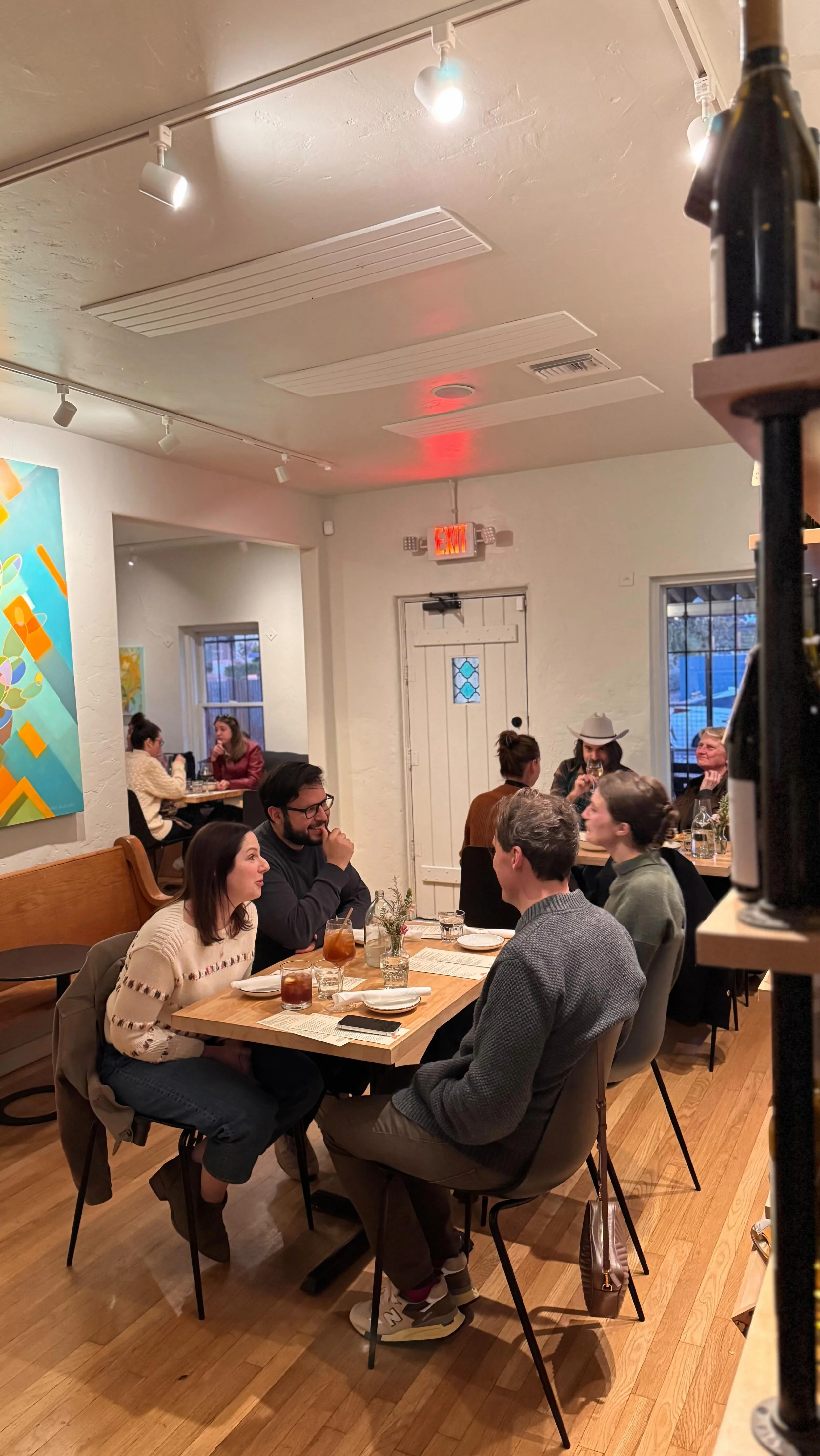Enjoy the cozy atmosphere inside, or sit around the fire pit in the expansive outdoor dining area. Sunshine Wine is a wonderful neighborhood spot to enjoy a beverage with friends.
